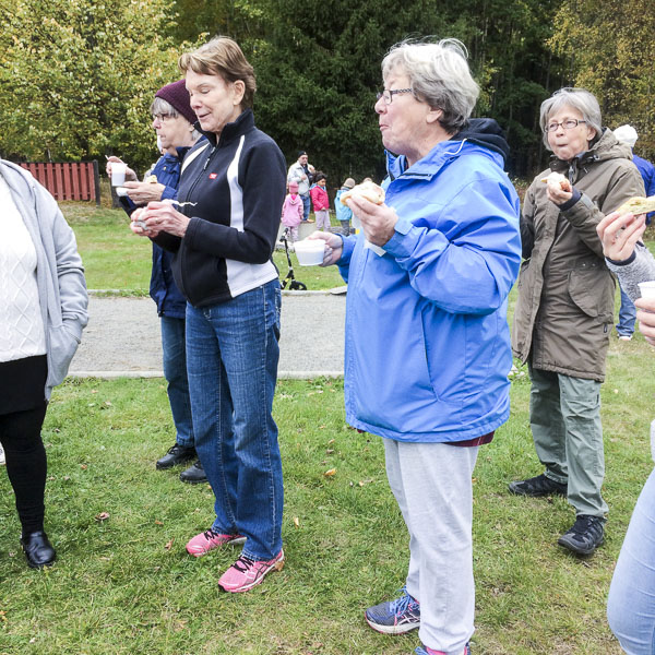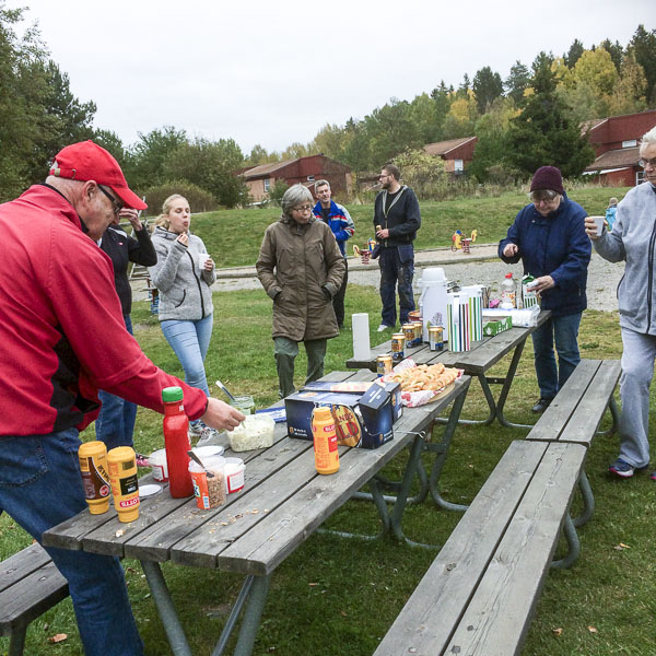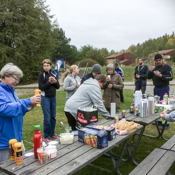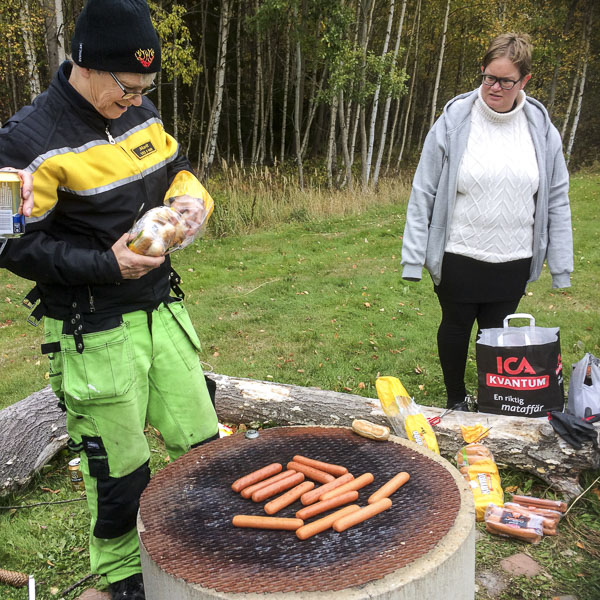 Ungefär vid 12:00 kommer vi att grilla korv vid stora lekplatsen. Där kommer vi även att bjuda på fika.