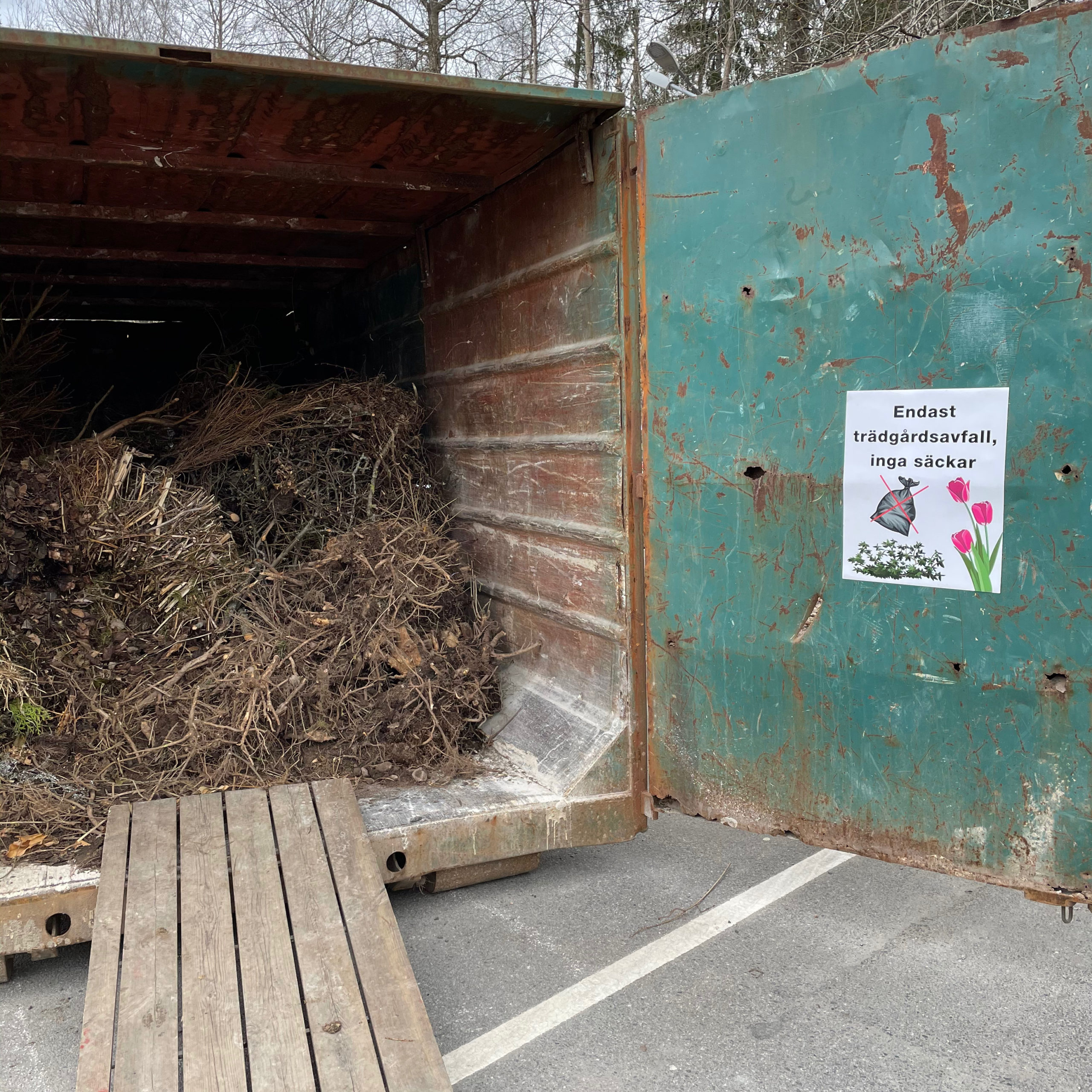 Container för trädgpårdsavfall.
