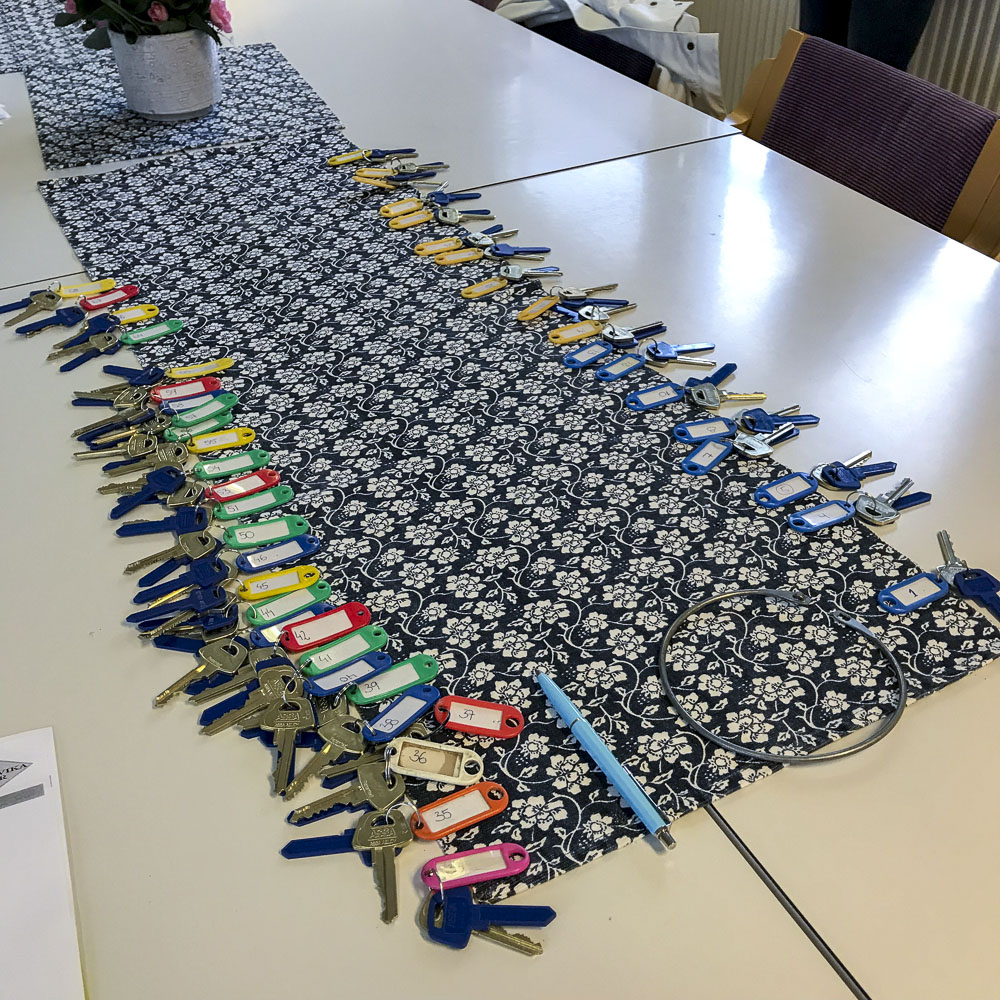 - Nyckel nummer 5 för utlämning för radhusen nya dörrar.